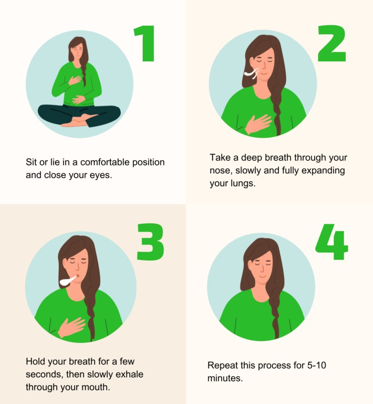Mindful breathing is one of the fastest ways to calm the nervous system. Slow, deep breaths signal your body to shift from a stress response to a relaxed state.